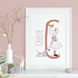 Abécédaire initiale prénom enfant illustré et personnalisable – Fille