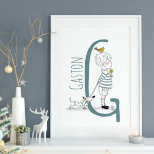 Abécédaire initiale prénom enfant illustré et personnalisable – Garçon