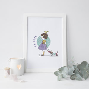 Portrait d’enfant illustré personnalisable – Prénom Fille