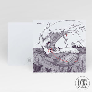 Carte postale illustrée baleine (whale&wave) d’après Hokusai