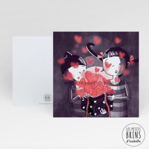 Carte postale illustrée Amour coeurs en boite cadeau (love)