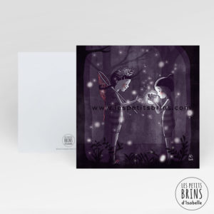Carte postale illustrée lucioles forêt