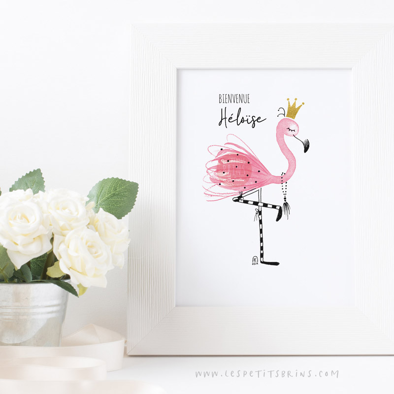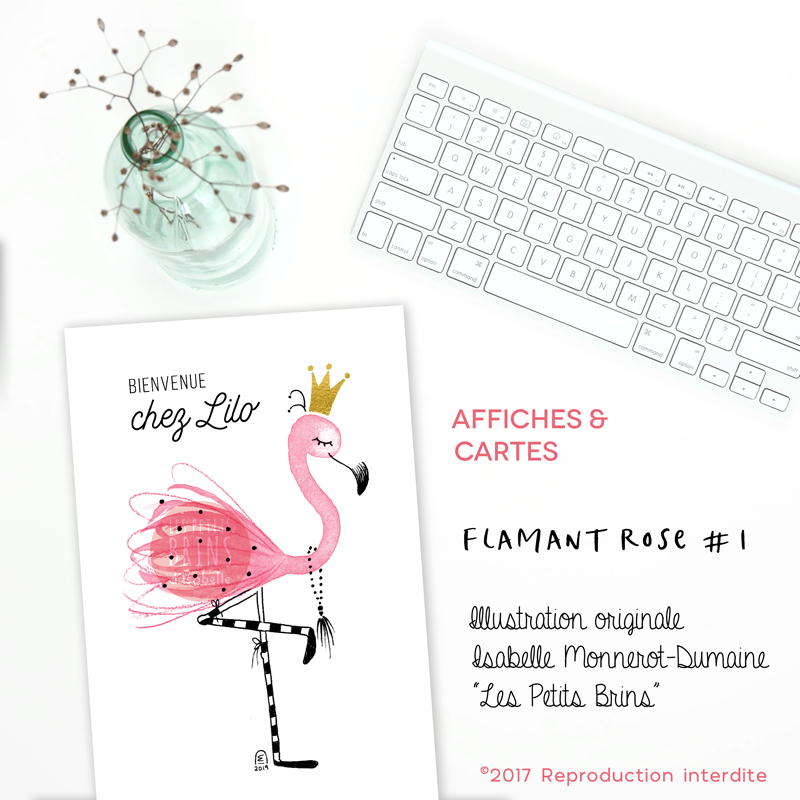 N’hésitez pas à me contacter si vous souhaitez que je compose ce visuel du flamant rose pour une utilisation sur un autre support : faire-part de naissance, carton d’invitation à un anniversaire…