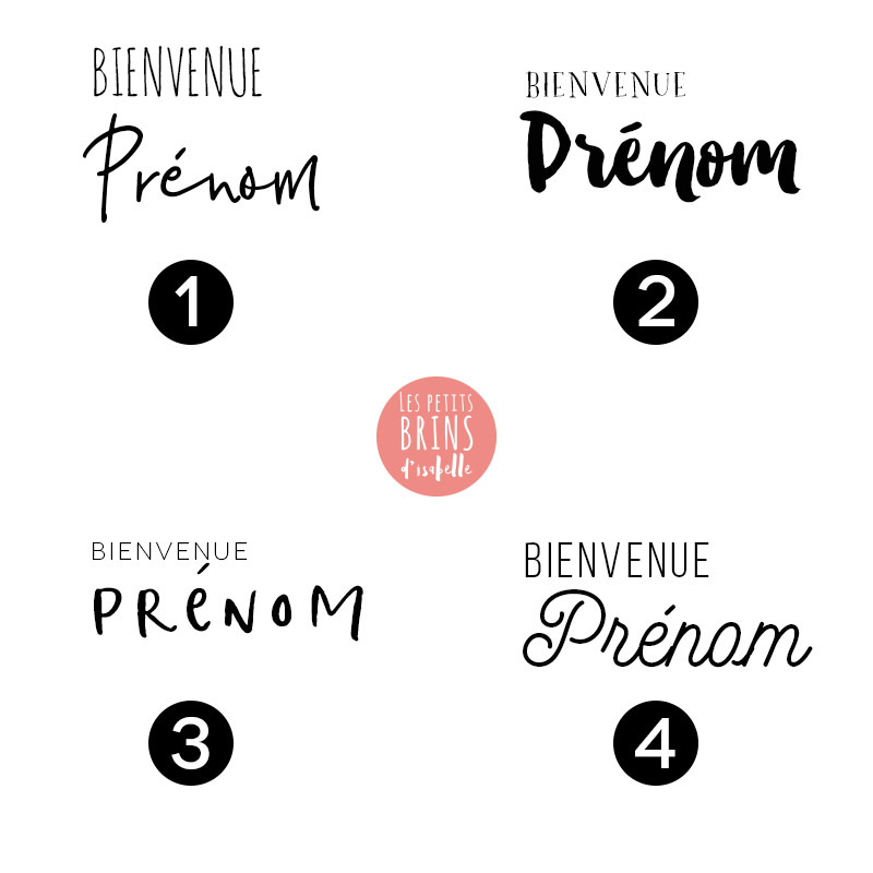 vous pouvez y ajouter « Bienvenue PRÉNOM » ou « PRÉNOM et date de naissance ». Attention, se référer aux modèles, aucun changement ne sera effectué. Veillez à bien vérifier l’orthographe du prénom et la date de naissance. Ces reproductions giclées fine art étant faites à la demande, aucun retour ou échange ne sera effectué.